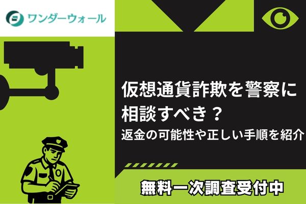 また、以下の記事では、仮想通貨詐欺を警察に相談すべきか詳しく解説しています。